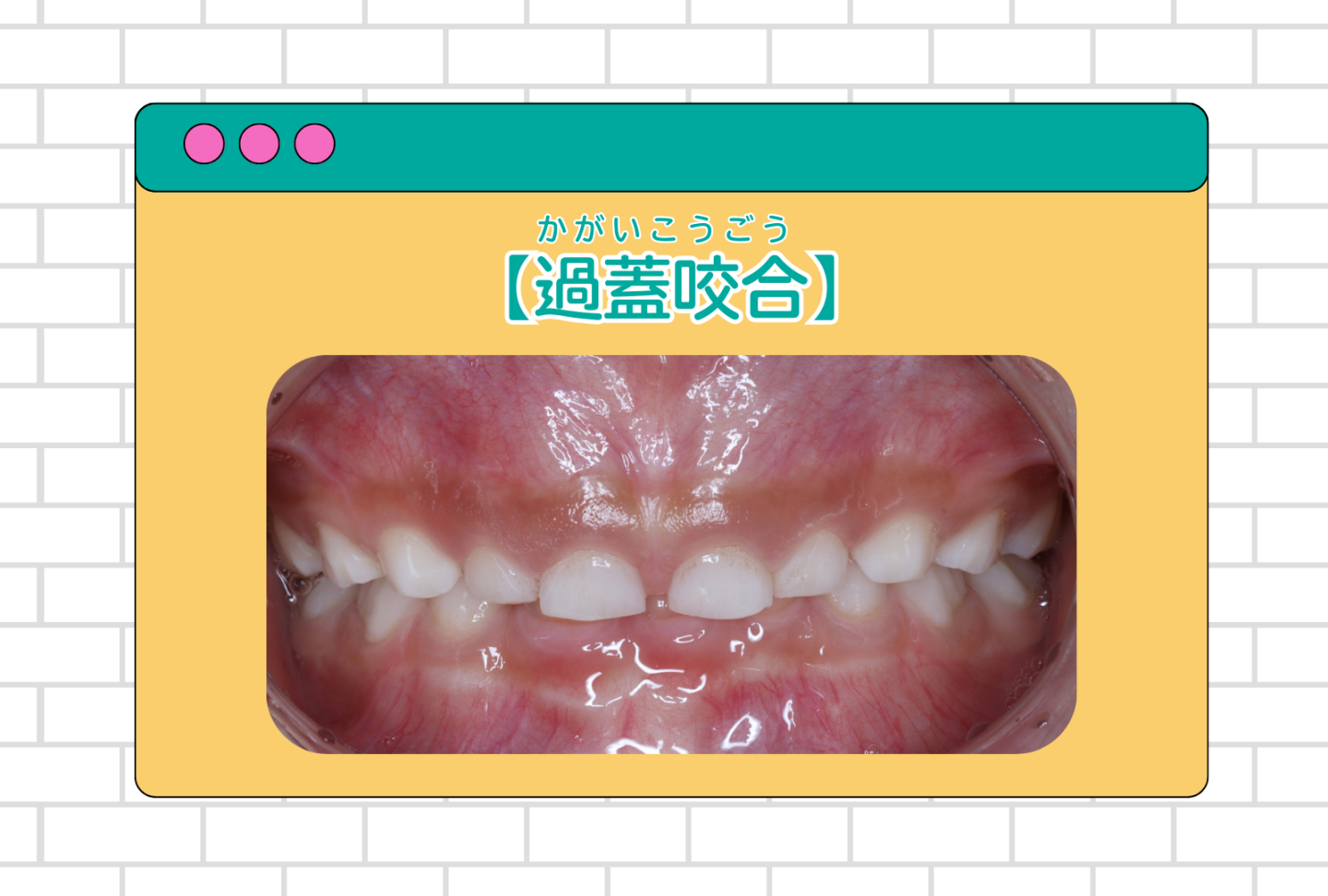 子どもの過蓋咬合は、見た目だけでなく 顎の成長や、発音、歯の健康にも影響を及ぼすことがあります。