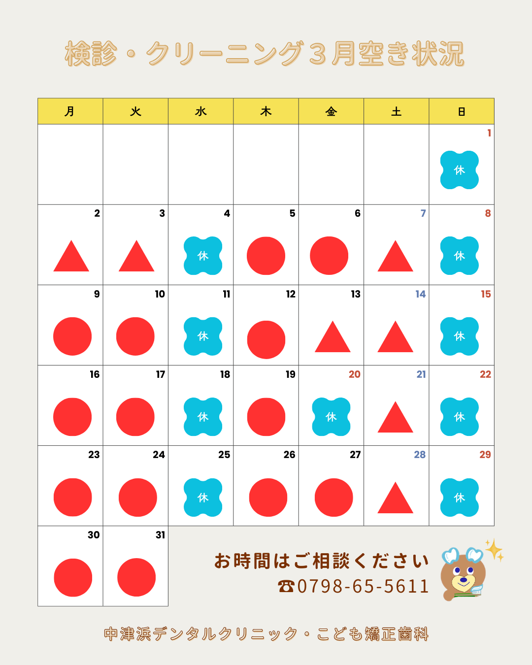 3月の予約空き状況のご案内です⭐️