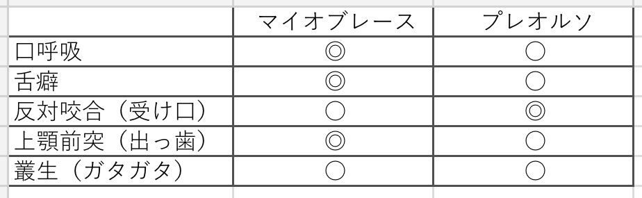 マイオブレースとプレオルソ、その2つの装置にはどのような違いがあるのでしょうか?